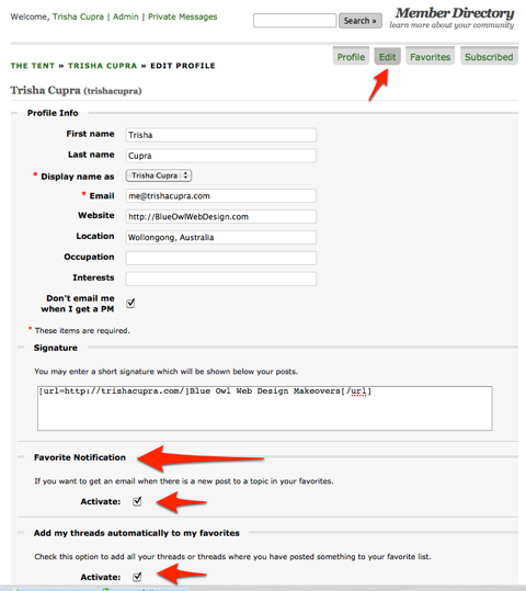 This only really takes a minute or two to set up and does everything but email you when a new thread is created by someone else. For that, you just need to stroll around the Tent and check who’s talkin’ about what, and get involved where you will. The automation will do the rest.